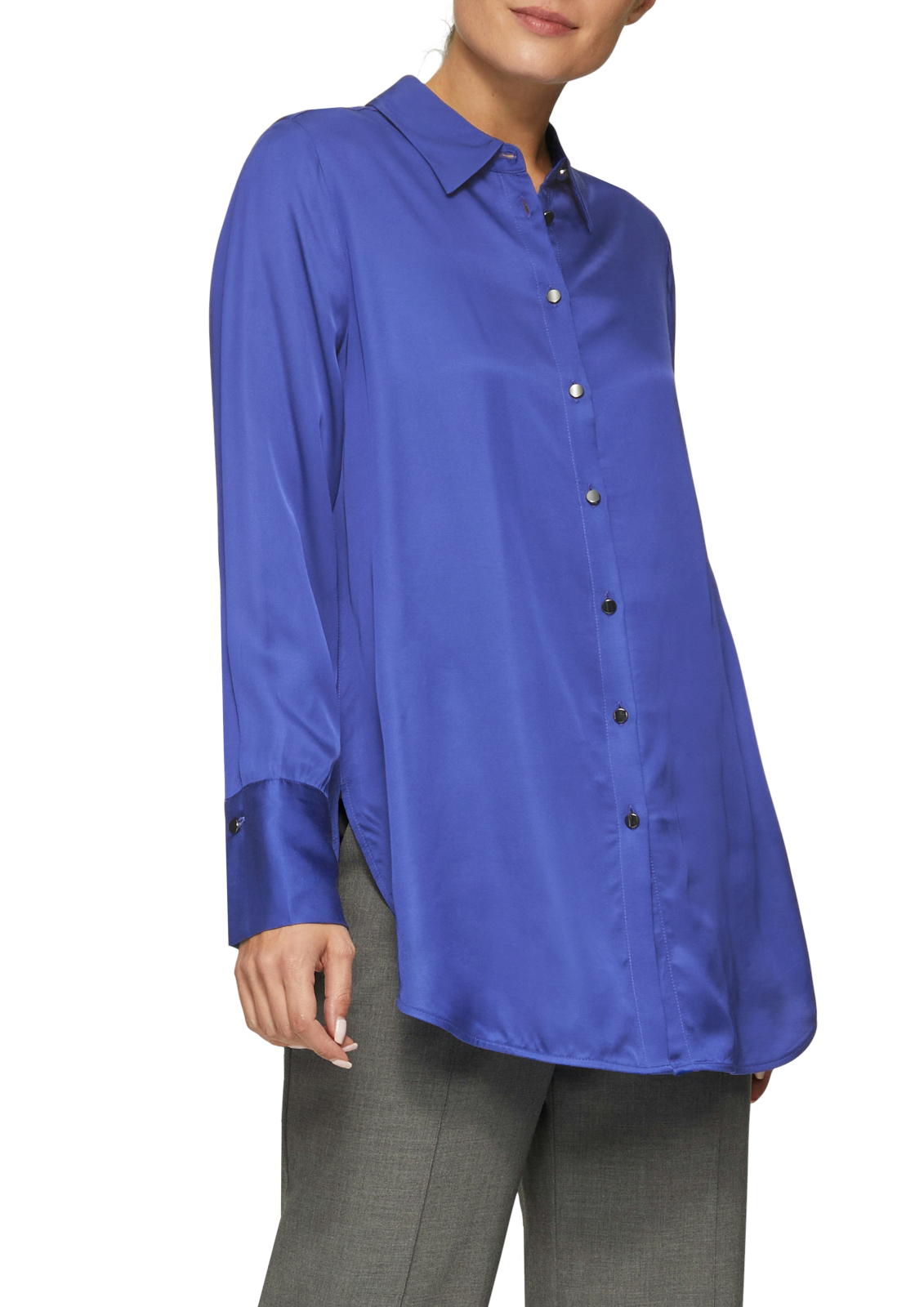 Long blouse made of viscose satin with metal buttons Marimi Disponibile: 36; 38; 40 100% viscose