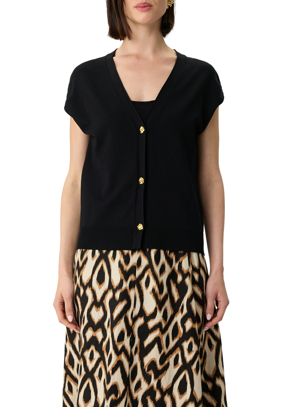 Sleeveless cardigan with decorative metal buttons